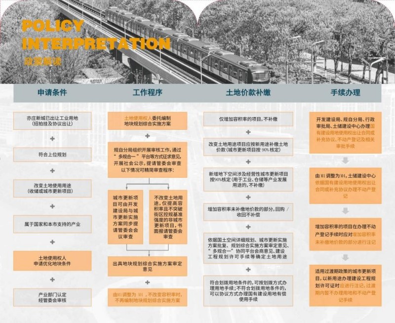 2.指标调整路径明确,释放空间开发潜力。以城市更新改革为依据,将转换土地用途项目纳入城市更新项目库。政策允许土地使用权人申请优化地块规划条件,首次系统性明确土地使用权人申请提升容积率、转换土地用途的具体实施路径,破解了以往“路径不明、规则不清”的难题。