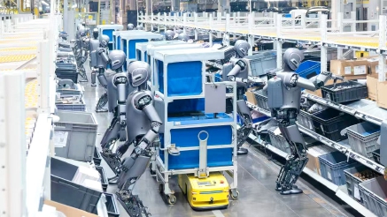 在工厂内,这些Walker S1机器人分布于总装车间、SPS仪表区、质检区及车门装配区等多个复杂场景,实现了协同分拣、协同搬运和精密装配等多任务协同作业。