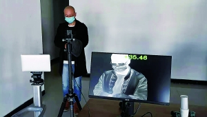 毛峥说,红外体温检测硬件产品开发完成后,又开发了智能识别软件,一个星期时间开发出了人脸识别非接触式红外体温检测仪。经过实验验证,该体温检测仪器在应用环境中,检测精度可达到0.5度,远远高于常见的手持体温检测仪,安装在楼宇、地铁站的入口处,不用接触就能自动检测过往人员体温,而体温检测的反应时间几乎没有延迟,人员一走一过就能精准检测体温,并在监控画面上显示。