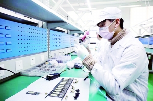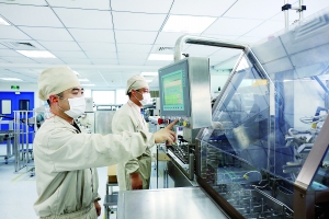 穿过走廊,来到隔离间,换上工作服和鞋套,在过道的洗手池按照要求洗完手,工作人员拿着酒精喷壶喷洒消毒后,记者才获准进入北京凯因科技股份有限公司(以下简称“凯因科技”)的一号包装间。车间里一台台机器飞速运转,10多名员工在生产线上紧张忙碌着,从灌装、封签、质检到打包、装箱,每天有约6万支重组人干扰素α2b注射液(凯因益生)在这里完成生产。