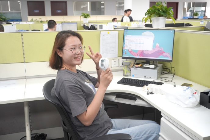 “好小巧的手持风扇,还真挺凉快的。”上午九点,满载清凉物资的车辆准时到达北投台湖产业园,工作人员紧张有序地将800份手持电动风扇和风油精现场拆箱、分类打包,并根据园区内不同楼层企业员工数量将所需物资装进推车内,从上至下地开始逐层走访企业,将清凉物资送至企业职工手中。“以前我们就感受过各式各样的优质服务,收到过小扇子,还参加过飞盘比赛,这次由服务港牵头组织的慰问活动再一次让我们感受到了经开区各部门和园区对我们的关心,也让我们在这里工作更加舒心。”中科艾尔(北京)科技有限公司市场经理说道。