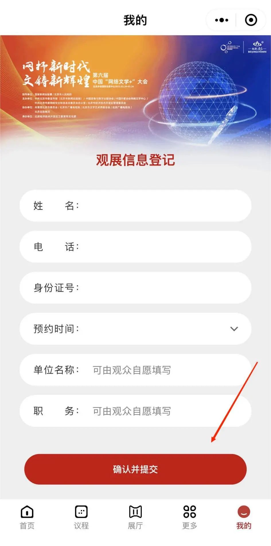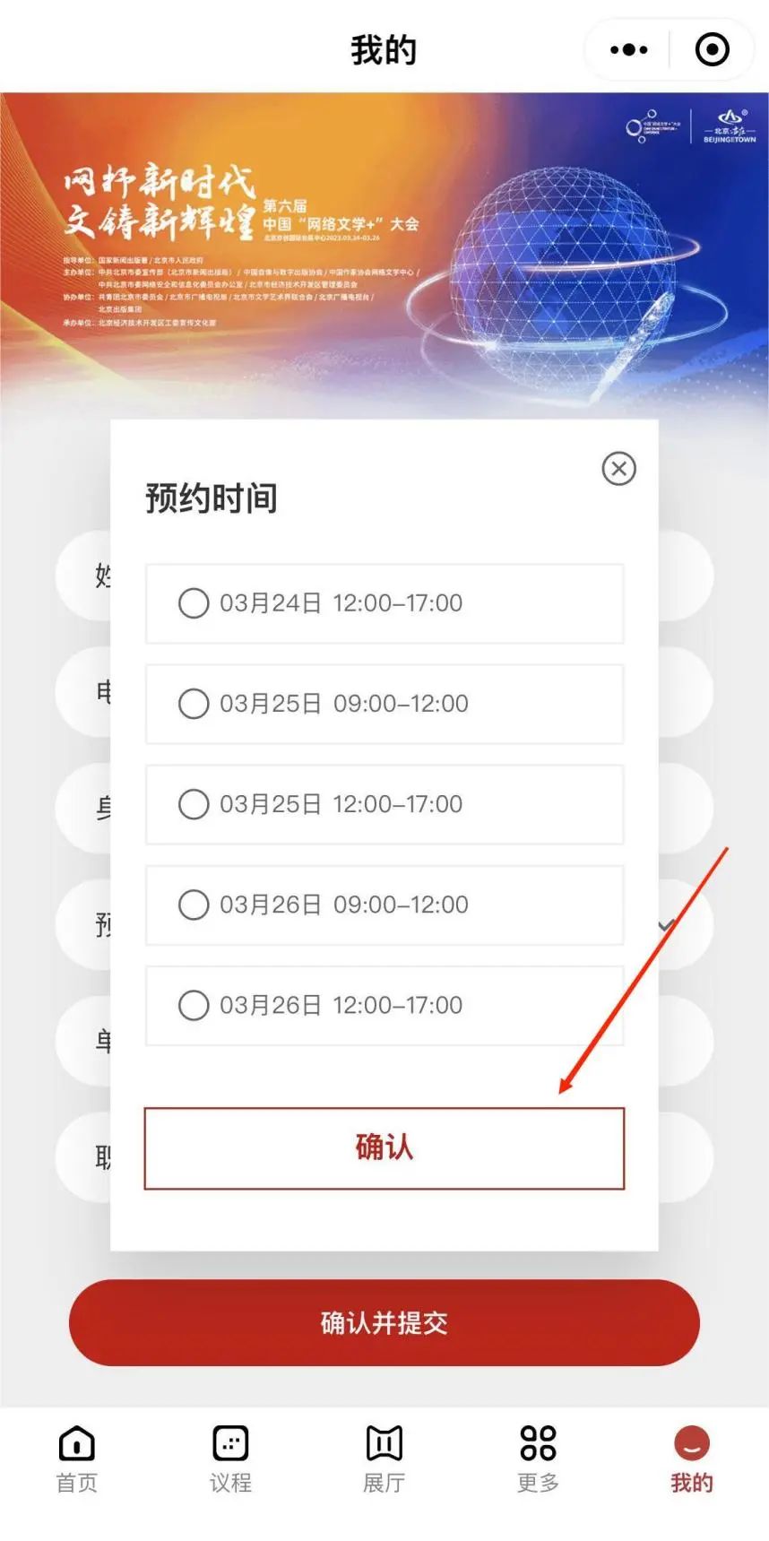 第一步:通过预约入口进入第六届中国“网络文学+”大会小程序后,点击预约观展。