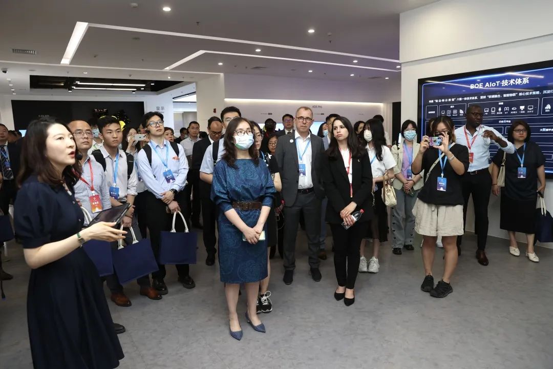 在京东方,使节和代表们通过领先的技术,切身体验“将想象变为现实”的炫目科技魅力,通过出神入化的显示屏幕技术,遨游在“见所未见”的未来世界,边参观边聆听工作人员的全英文讲解,充分感受企业以智慧领航,将科技变温暖,在更多应用场景、更新跨界领域打造“屏之物联”的视觉巅峰。