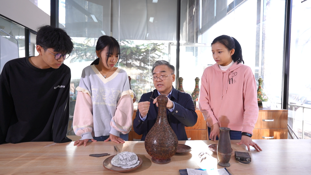 △景泰蓝制作技艺代表性传承人钟连盛大师为学生授课