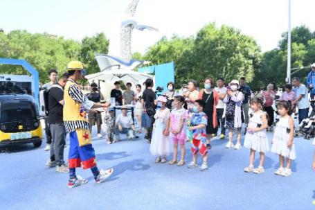 小丑精妙绝伦的魔术表演吸引到众多人群驻足,派发的气球更成为孩子们的心头好。