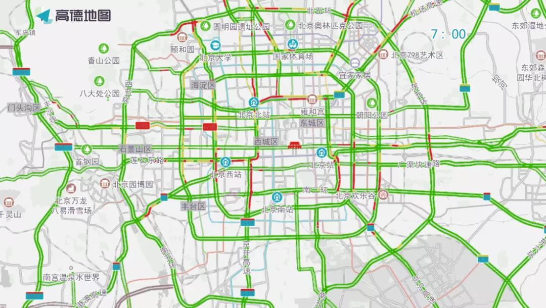 工作日早、晚高峰,城区环路、联络线以及桥区节点行驶缓慢