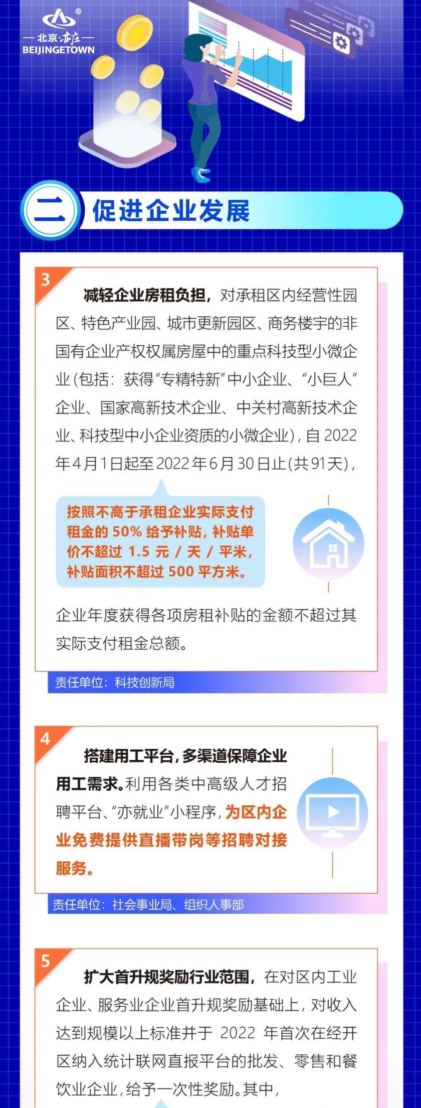 政策覆盖范围的扩大不仅体现在房租减免政策,而且体现在首升规奖励行业范围,在区内工业企业、服务业企业首升规奖励基础上,对收入达到规模以上标准并于今年首次在北京经开区纳入统计联网直报平台的批发、零售和餐饮业企业给予一次性奖励。