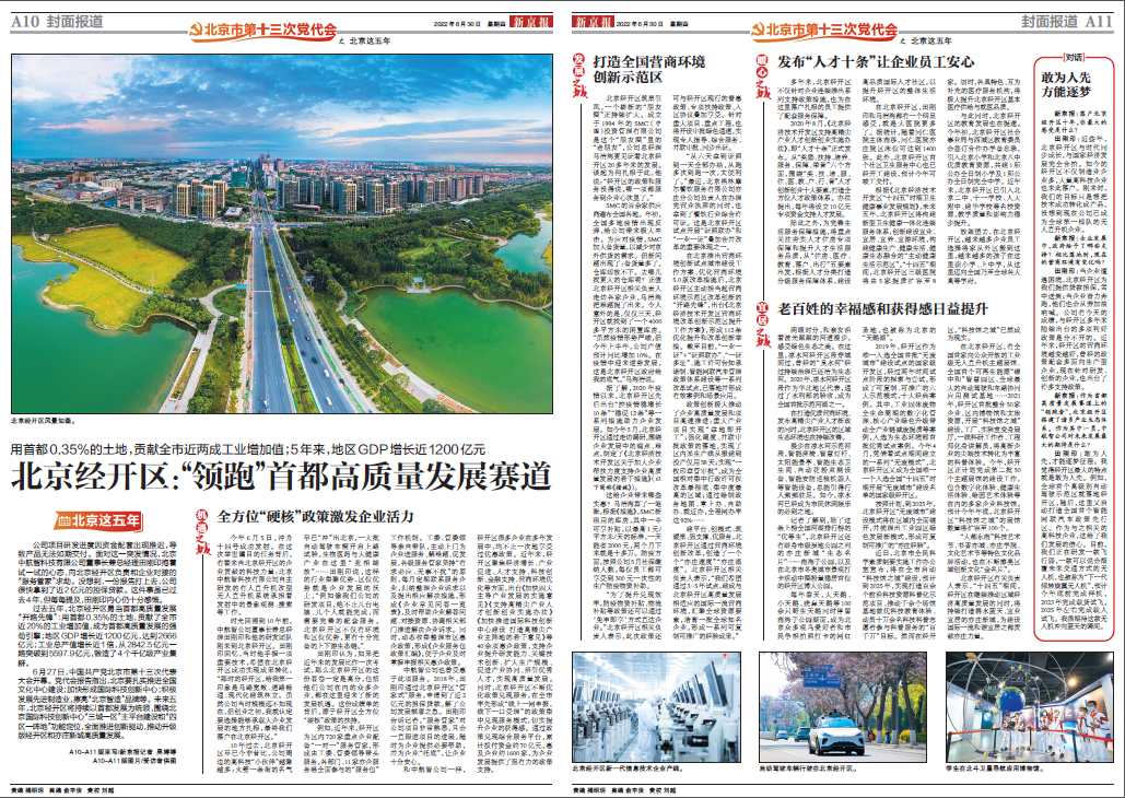 机遇之城、发展之城、暖心之城、宜居之城!《新京报》跨版报道北京经开区高质量发展