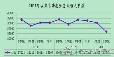 截至二季度末,开发区“三上”单位劳务派遣人员3.3万人,比一季度末下降9.8%,减少3560人,明显高于全部从业人员的下降幅度。减少人数较多的前五家企业是诺兰特移动通信配件、中国华冶科工、京东方显示、三洋能源、诺基亚通信,这五家企业共减少5250人,环比下降34.3%。