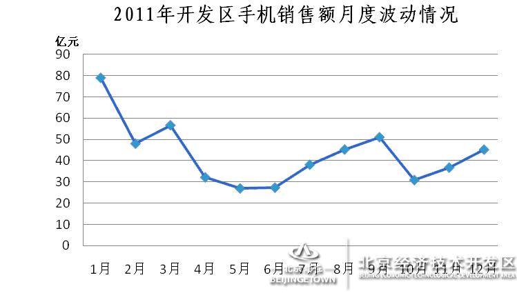 3.三大模块“两降一升”。手机、汽车两大类商品销售占全区商品销售总额的60%以上。2011年,受通信产品更新迟缓、北京汽车限购政策的影响,手机销售额517.8亿元,比上年减少68.5亿元,同比下降11.7%;汽车销售额144.4亿元,比上年减少21.4亿元,下降12.9%。而刚引入开发区的网上销售企业京东商城销售大幅度增长。2011年全区3家网上销售企业销售额同比增加175.5亿元,除弥补手机、汽车销售下行带来的影响外,还拉动全区商品销售总额增长8.9个百分点。这三大模块“两降一升”,在很大程度上影响了开发区批发零售业总体发展走势。