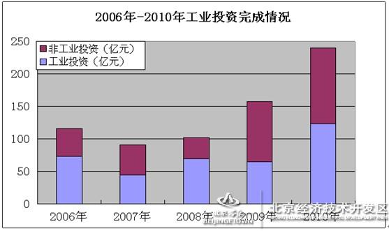 五年来,开发区固定资产投资项目逐年增加,累计项目达到800多个,年均增长39.5%,其中亿元以上投资项目超过120个,重大项目的落地对开发区投资的增长起到显著拉动作用。北京京东方显示技术有限公司——北京京东方第8.5代薄膜晶体管液晶显示器件(TFT-LCD)项目和中芯国际集成电路制造(北京)有限公司——中芯微电子厂房工程项目分别完成投资40亿元和30亿元,两个项目完成投资额占当年全社会固定资产投资总量的29.2%。北京市轨道交通建设管理有限公司——轻轨交通亦庄线项目完成投资39.3亿元,占当年全社会固定资产投资总量的25%。