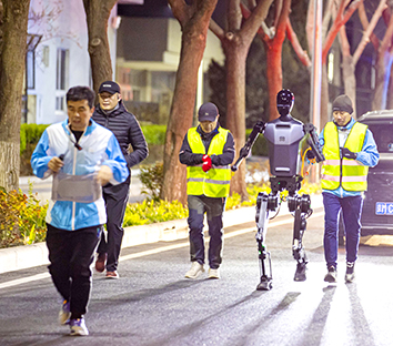 4月13日,全球首个人形机器人半程马拉松赛将在北京亦庄举办。随着比赛临近,参赛机器人在跑道上进行了首次路测。每一台人形机器人都接受了全方位检验,工作人员同步收集各项测试数据,以便在开赛前进行最后的调试训练,争取以最好的成绩完成比赛。 融媒体中心 张磊/摄