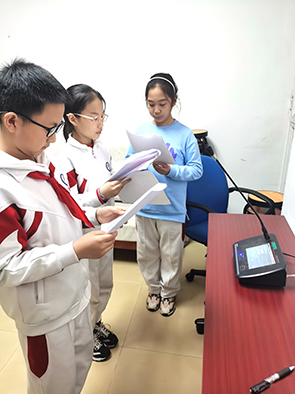 广播站内的自如流畅离不开同学们背地里下的功夫。原来,为更好地展现好故事中的生动场景,利用课余及周末时间练习,成为参与当天播音的杨炎青、张禹禾、冯知音、崔洪彬、耿健坤5名小学生这段时间的“必修课”。为更好展现人物性格,几位学生还仔细分析历史背景和人物性格,把故事读熟读透,体会人物情绪,利用在校时间一起排练,即使在播音当天开始前,孩子们也抓紧最后的时间进行刻苦排练,从而高质量完成了本次播音。