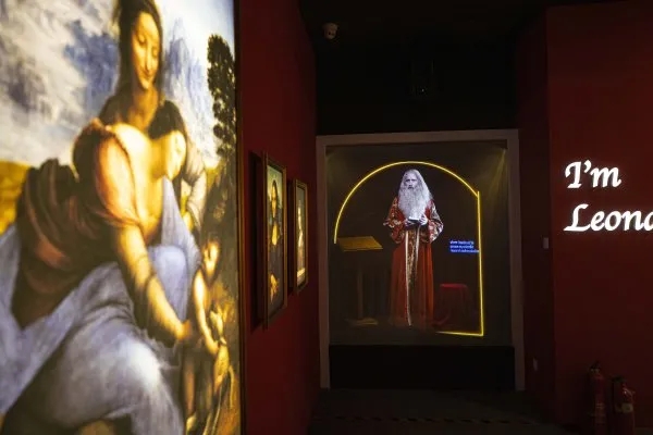 据介绍,“时光·宝藏-对话达芬奇”沉浸式光影艺术展是北京经开区首届“大都东南”科技艺术节的年度收官活动之一。该光影展通过数字技术展现了达芬奇的多部经典绘画作品并展出了达芬奇发明的机械、齿轮等作品。