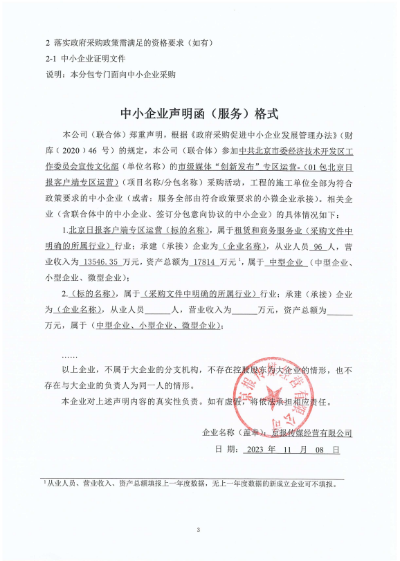 京报传媒经营有限公司 | 北京日报客户端专区运营 | / | 1 | 179.5万元 | 179.5万元 | 完全满足招标采购需求 |