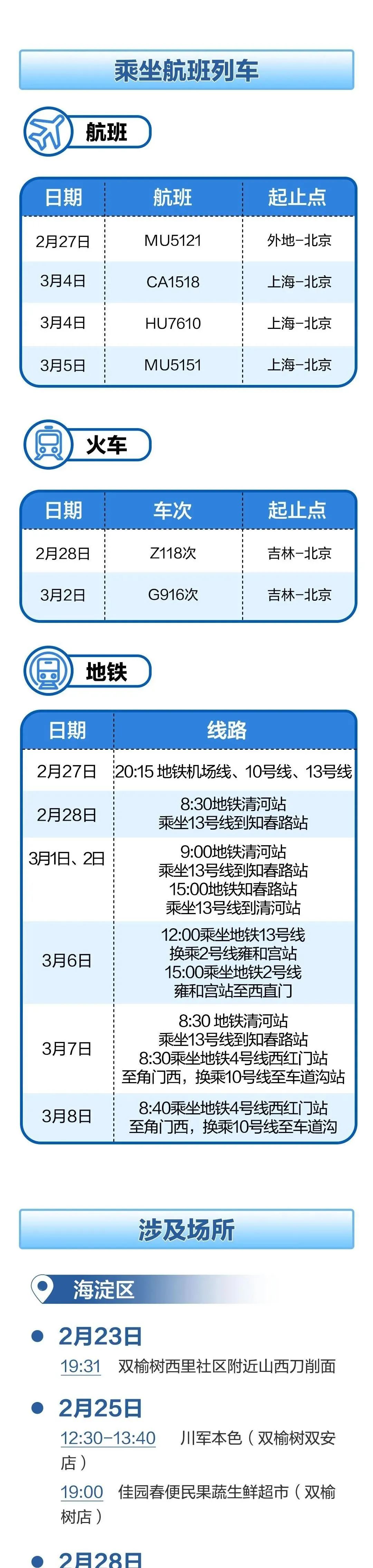 这些感染者涉及的航班、列车、地铁及场所有哪些?一图速览!