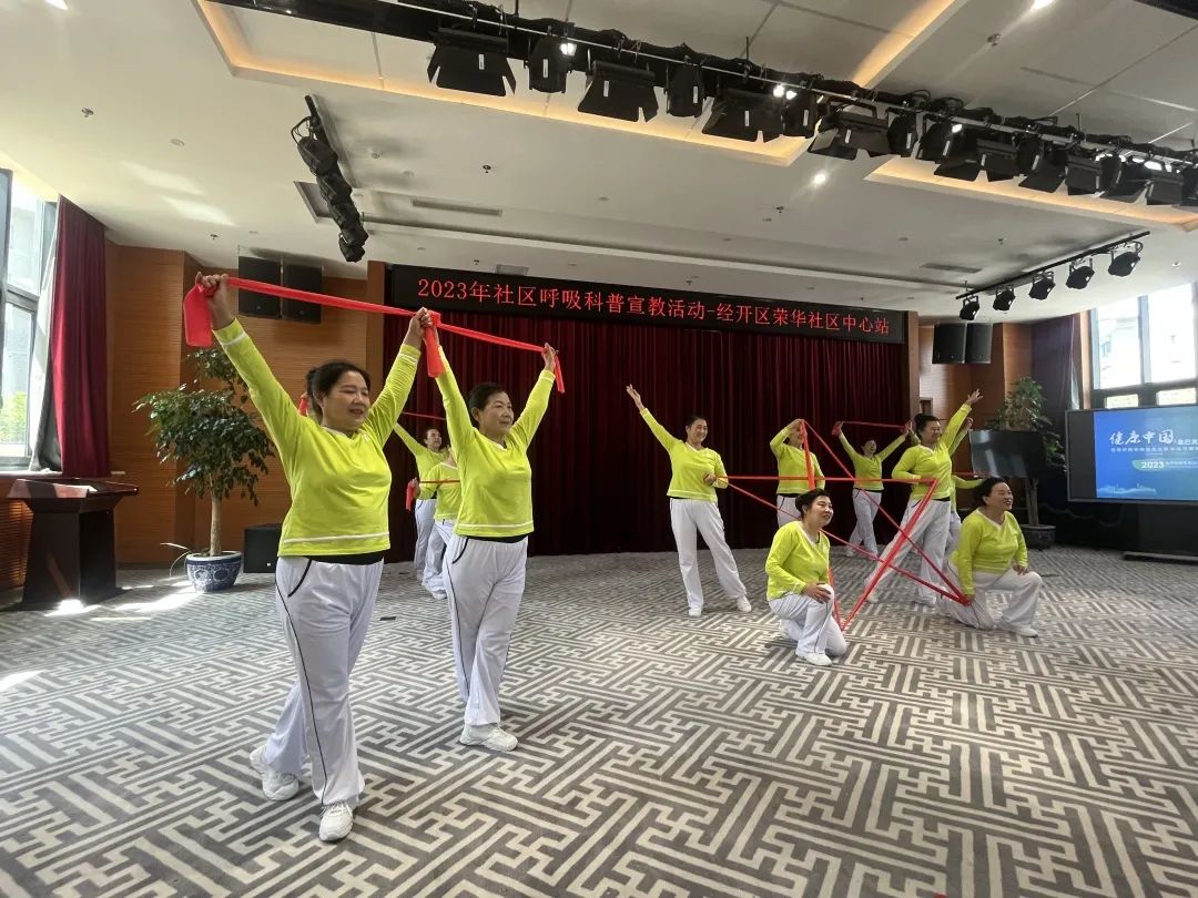 在健康大讲堂环节,中国基层呼吸疾病防治联盟、明道健康研究院选派市级专家张永祥教授,为居民们讲解急性上呼吸道感染注意事项。荣华社区卫生服务中心全科副主任医师王俊香,为居民们科普慢阻肺患者日常注意事项,并在随后与居民一起展示弹力带健身操,传播科学健身理念。