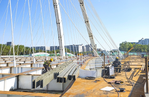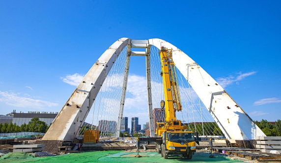 本报讯(融媒体中心史明阳)近日,随着文昌大道跨凉水河桥最后一组吊杆张拉完成,标志着该桥梁钢结构工程全部完成,正式进入桥面铺设阶段。