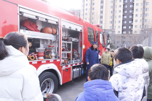 “消防车好酷啊,有好多工具啊。”“这个是什么呀?怎么使用啊?”消防员为大家细致介绍了各类消防器材的名称和用途,并邀请学生们参观消防车内的架构,近距离体验消防安全的重要性。“通过消防员叔叔的讲解,让我感受到了他们的辛苦和无私,我要和身边的朋友分享这些消防安全知识,同时我将成为像消防员一样乐于奉献的人。”学生吕雨珊说。