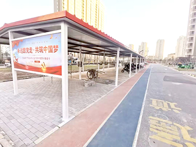 新建车棚不仅方便居民停车、充电,还在两侧设置了“党建文化宣传板”。
