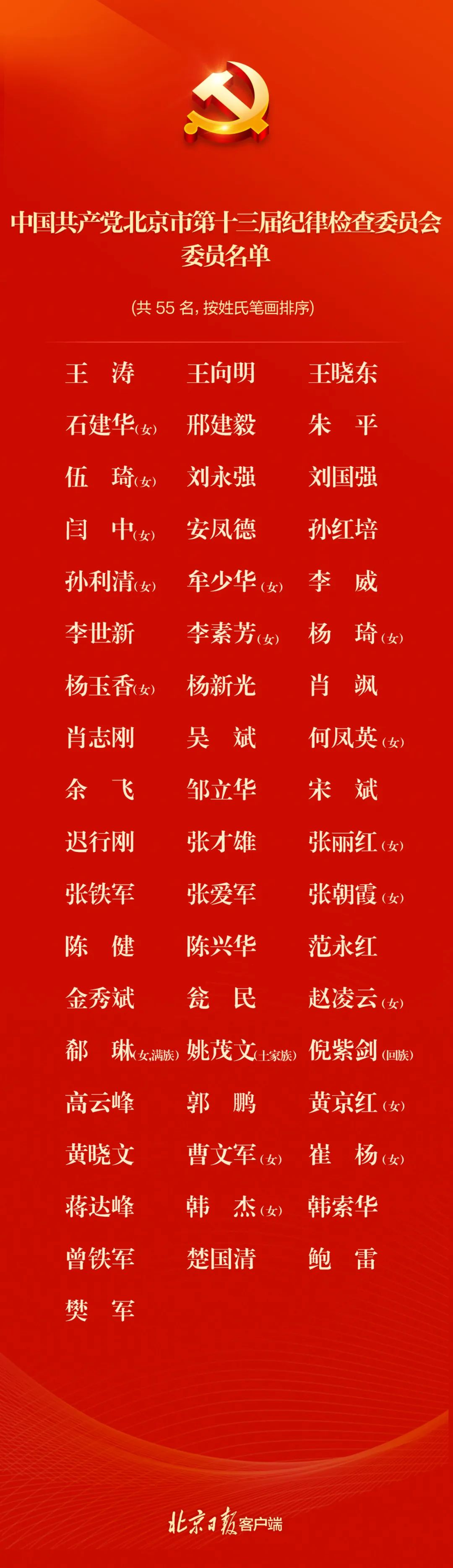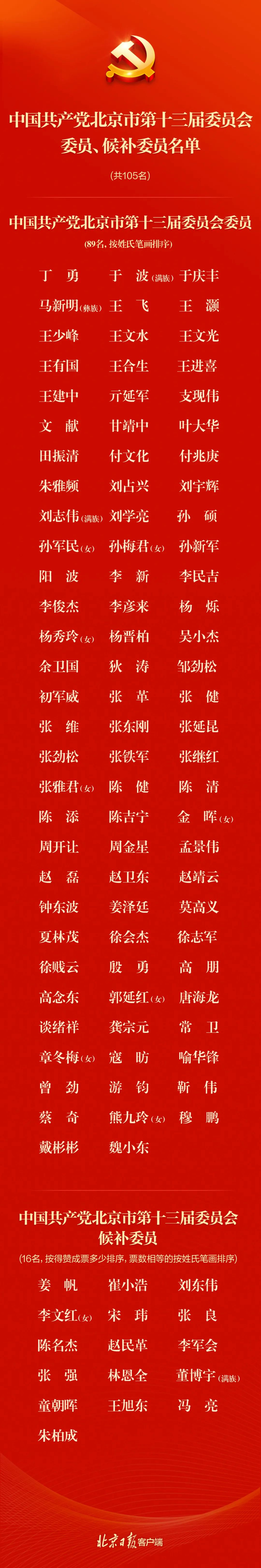 中共北京市第十三届委员会委员、候补委员和市纪委委员名单公布