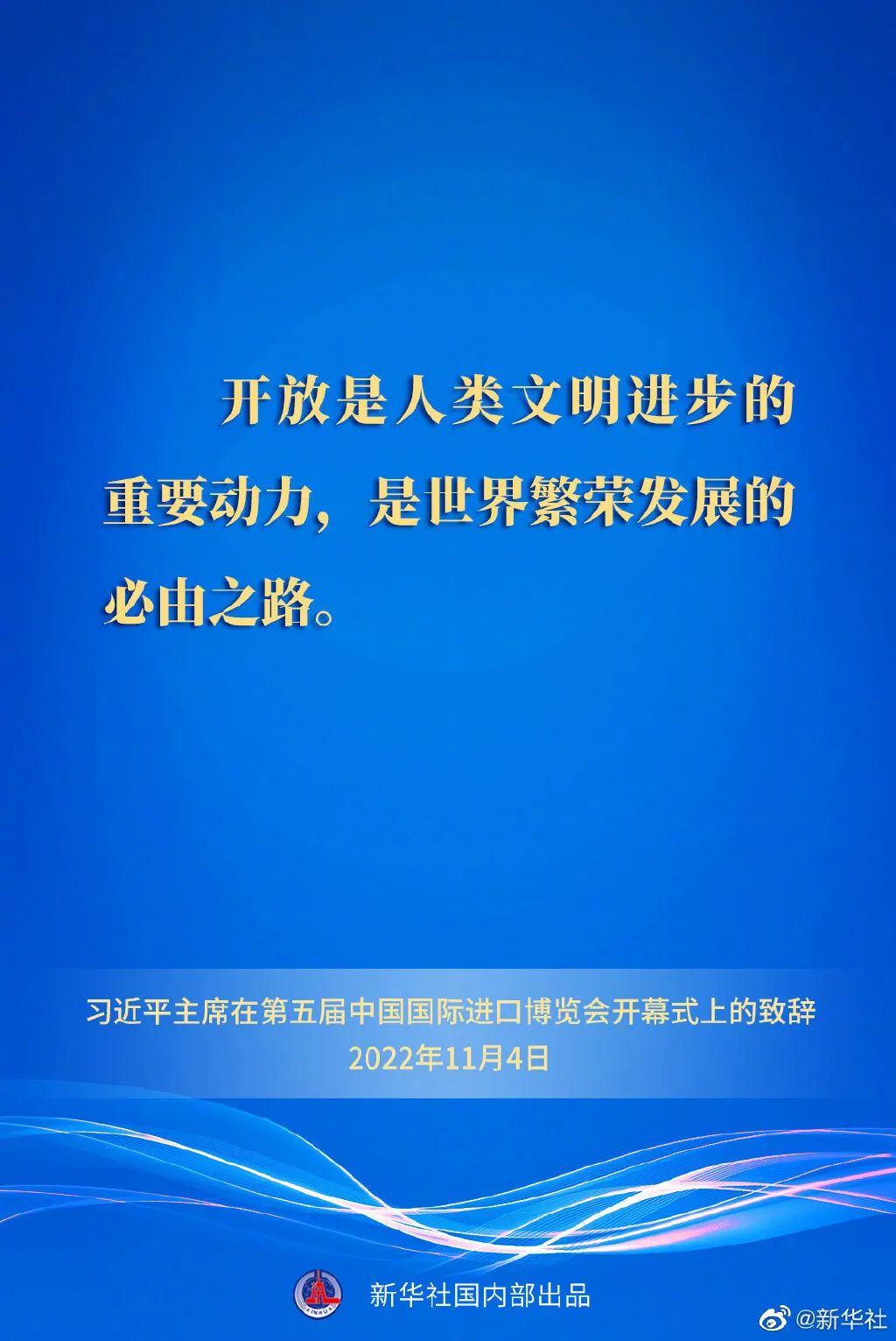 习近平强调,开放是人类文明进步的重要动力,是世界繁荣发展的必由之路。当前,世界百年未有之大变局加速演进,世界经济复苏动力不足。我们要以开放纾发展之困、以开放汇合作之力、以开放聚创新之势、以开放谋共享之福,推动经济全球化不断向前,增强各国发展动能,让发展成果更多更公平惠及各国人民。