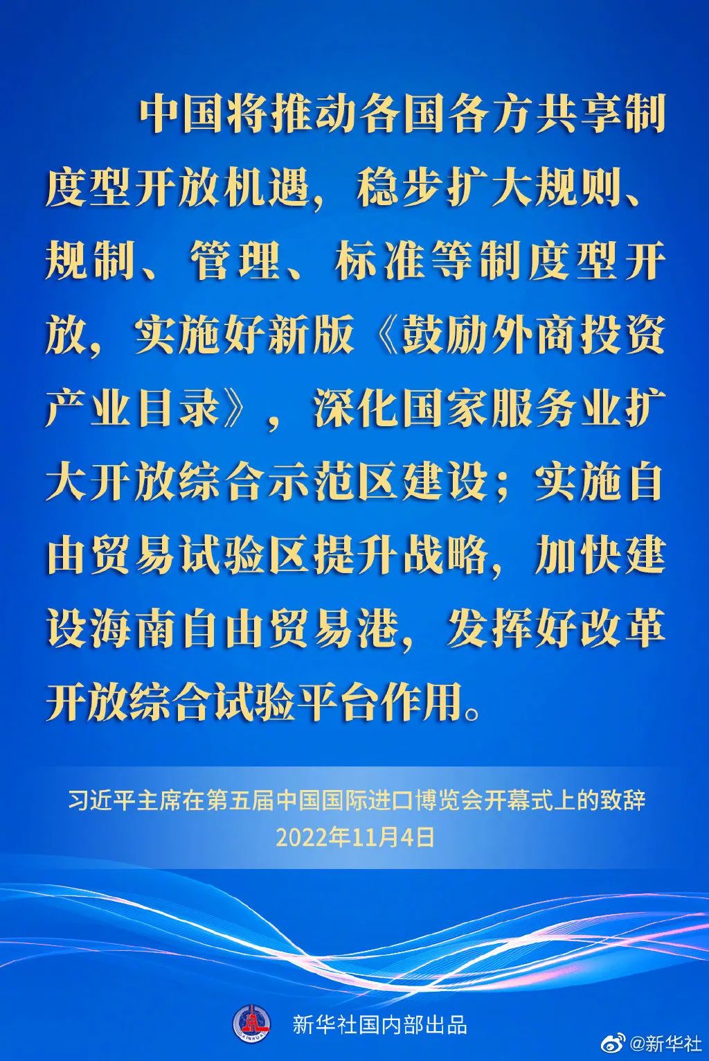 ——中国将推动各国各方共享制度型开放机遇,稳步扩大规则、规制、管理、标准等制度型开放,实施好新版《鼓励外商投资产业目录》,深化国家服务业扩大开放综合示范区建设;实施自由贸易试验区提升战略,加快建设海南自由贸易港,发挥好改革开放综合试验平台作用。