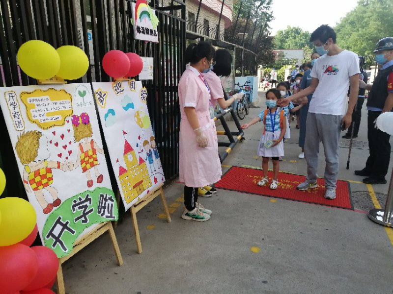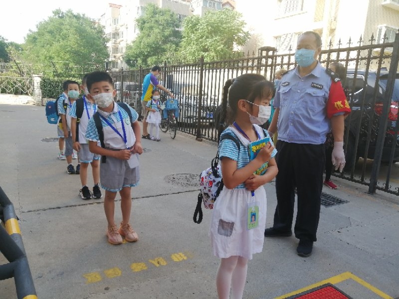 和幼儿园相比,小学生们的返校工作已经相当熟练了。入校体温检测、老师门口迎接、送上开学礼包,有了之前开学的经验,北京经开区各小学开学井然有序。老师和同学们开心的心情,即便隔着口罩也能感受到。