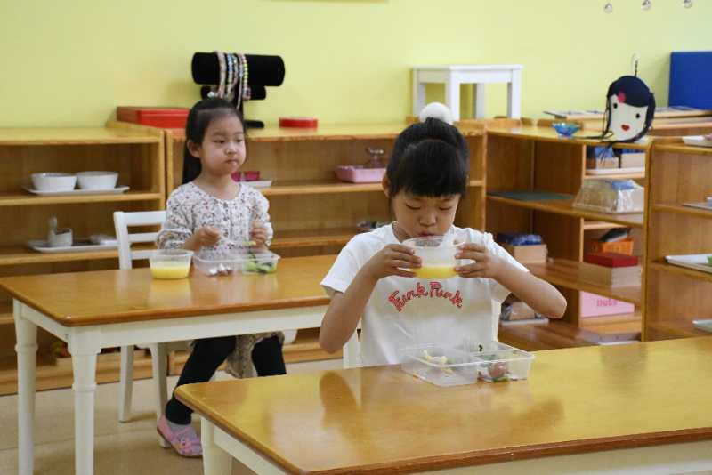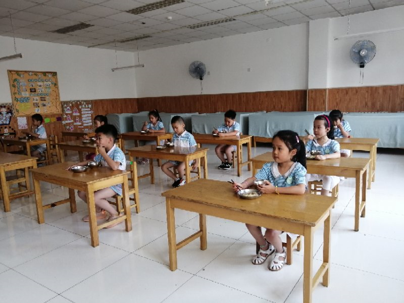 入园后,不少孩子开始吃早饭。幼儿园都加大了就餐间隔,保证每个孩子安全。