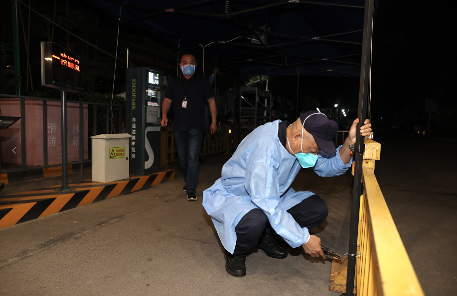 当日凌晨两点四十,接到小区88栋2257人最后一轮核酸检测全部为阴性结果后,小区物业经理唐海军从办公室的硬板床上一骨碌麻溜起身,招呼同事们冒着夜色前往小区北门口撤除封控挡板,打扫门口卫生,仅用10分钟就让大门口恢复了往日光彩。"小区封控期间,物业保安、保洁、维修等各部门53人在岗值守,终于迎来解封时刻,心情太激动了!"唐海军高兴地说。门岗保安师傅张胜志也难掩心中兴奋,拿起抹布、扫帚一遍遍清理大门和地面:"小区封控以来,我就一直在这儿值守,为小区疫情防控出力,我感到很自豪。"