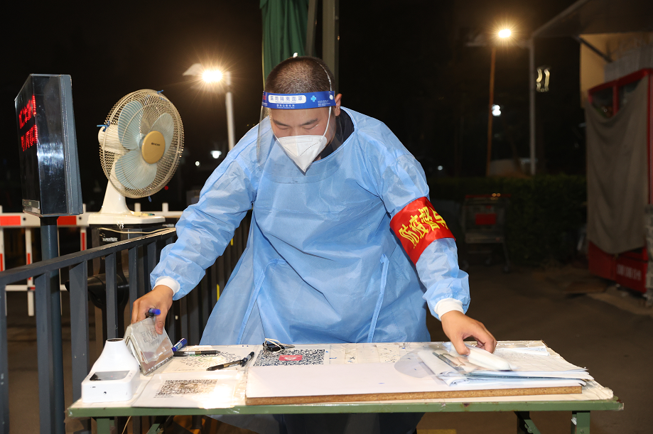 3点10分,一辆车驶入东门,测温、扫码、出示72小时核酸检测证明……车上是一对夫妻,因为管控前住在亲戚家中,一直在等待着归家的日子,脸上的疲惫和眼底的血丝可以看出他们彻夜未眠等候着解封的消息。
