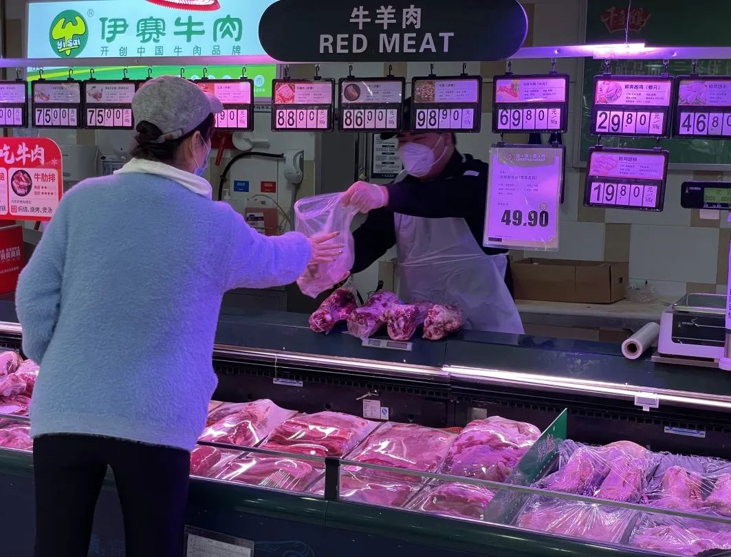 “为保障居民购物需求,我们超市各类商品供货充足、价格稳定,尤其是肉类,超市内不仅有北京市政府储备猪肉的供应,每天也会有200-500公斤的新鲜肉类。超市也开设了线上商城,让居民足不出户‘购’到新鲜。”BHG华联生活超市工作人员说。