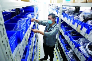 走进思瑞德的库房,一排排货架整齐排列,芯片、线缆等零部件分门别类地码放着。库管员孙式亮是这里的成员之一,他一边取件一边告诉记者,从早到晚几乎没有空闲的时候,遇到取件高峰,都不敢多喝水。