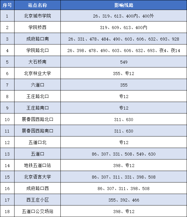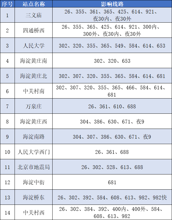 4-大兴线:海淀黄庄(可站内换乘10号线)、中关村、人民大学站采取封站措施。