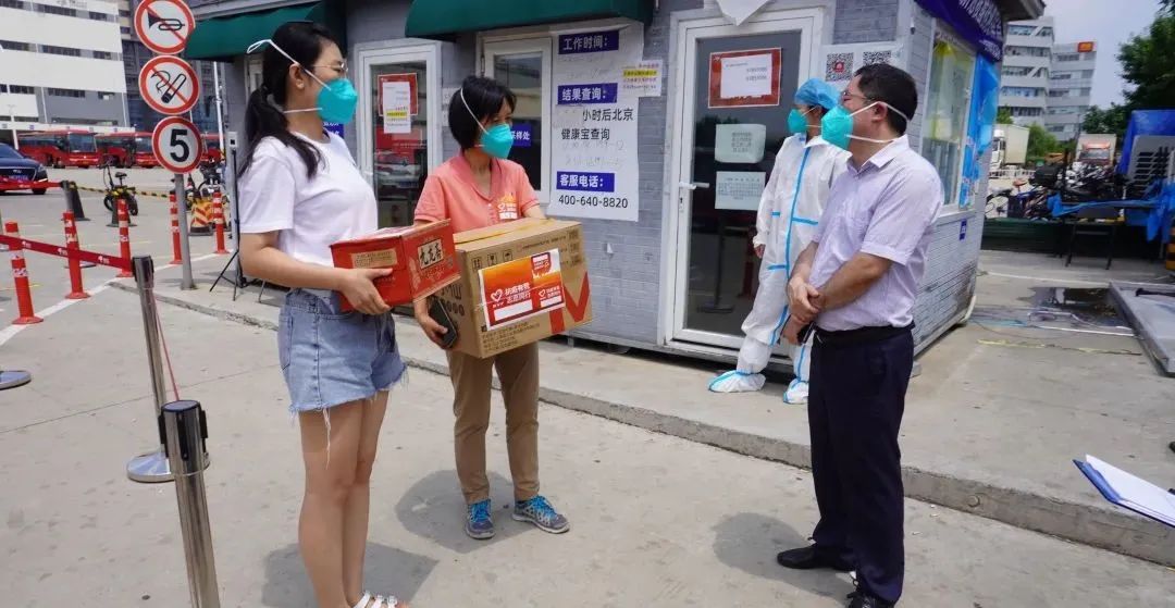 近期,北京经开区近90位核酸采样志愿者经过培训、考核,正式深入各社区、园区开展志愿服务工作。近日,北京经开区社会事业局、北京经开区医学会相关负责人前往志愿者支援的核酸采样点,对首批上岗的核酸采样志愿者进行慰问,并送上消暑饮料等暖心物资。