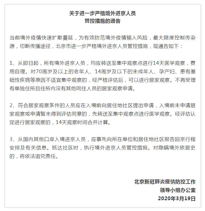 最新通告!北京发布进一步严格境外进京人员管控3条措施