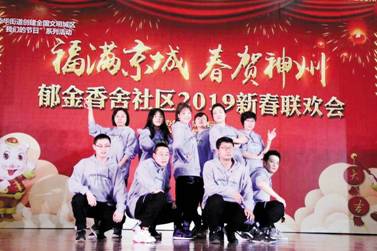 当天,演出现场的台上灯光闪烁,台下人声鼎沸,喜悦欢乐的氛围仿佛从一进入现场就迅速感染着每位居民。一支《Good Time》舞蹈宣布了当天新春联欢会的开始,伴随着欢快的音乐节奏,郁金香舍社区居委会的社工们跳着整齐划一的舞蹈动作,为居民们奉上一支活力四射的开场舞。“这也是我们社区居委会的‘转型’力作,展示我们在新一年社区建设工作中更上一层楼的信心。”社区居委会主任李衡介绍。社工们的表演别出心裁,社区文体队伍的表演功底也丝毫不弱。
