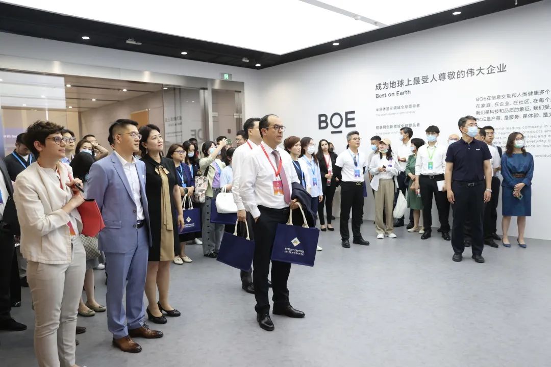 在京东方,使节和代表们通过领先的技术,切身体验“将想象变为现实”的炫目科技魅力,通过出神入化的显示屏幕技术,遨游在“见所未见”的未来世界,边参观边聆听工作人员的全英文讲解,充分感受企业以智慧领航,将科技变温暖,在更多应用场景、更新跨界领域打造“屏之物联”的视觉巅峰。