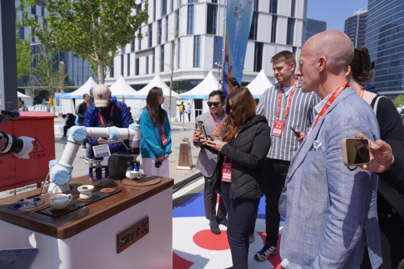 终点处的信创园化身“未来科技秀场”。现场,茶艺机器人动作行云流水,将中国传统茶艺以科技化的方式完美演绎;咖啡机器人在香醇的咖啡香气中大展身手,细腻绵密的奶泡在它的操作下幻化成精致的拉花图案;煎饼机器人制作的金黄酥脆的煎饼散发着诱人香气……还有机器人扭动着身体,伴随着动感的音乐摆动起舞,引得驻华外交官连连赞叹。
