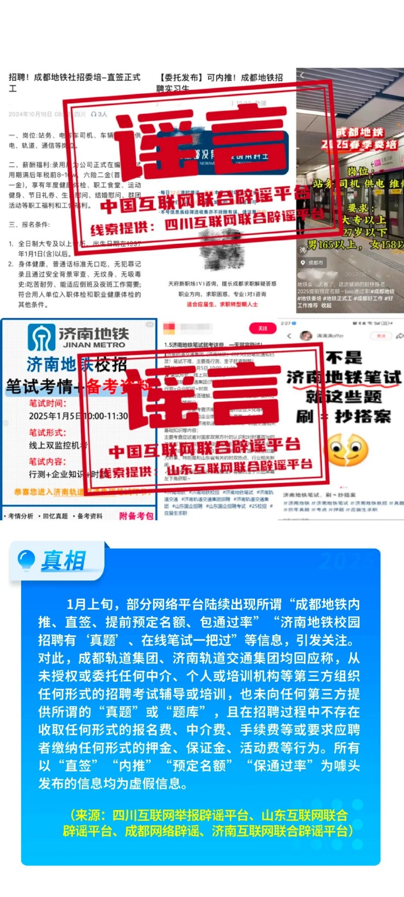 成都地铁招聘“提前预定名额”?济南地铁校园招聘有“真题”?