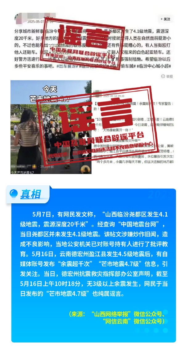 打击网络谣言 共建清朗家园 中国互联网联合辟谣平台2025年5月辟谣榜
