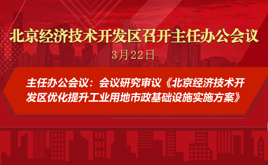 会议研究审议了《北京经济技术开发区优化提升工业用地市政基础设施实施方案》。会议指出,提升工业用地市政基础设施有利于进一步优化营商环境,对促进招商引资和重大项目落地具有重要意义,各部门要按照工作规范程序,做好审核把关、流程监管和风险把控,把好事办好、办实,确保实施方案落地见效。要做好与大兴、通州两区的沟通协调,涉及两区的相关事项,征询属地政府和专业公司的意见建议,实现一体谋划、一体部署、一体推进。