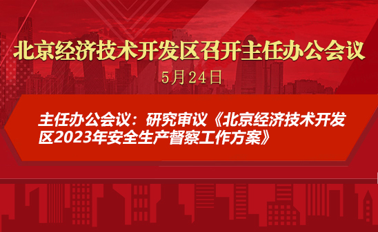 5月24日下午,工委副书记、管委会主任孔磊主持召开北京经开区2023年第16次主任办公会,研究审议安全生产督察工作方案及档案制度规范体系建设相关事项。亦庄控股总经理杨文良列席。