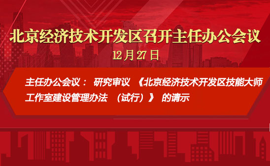 工委副书记、管委会主任孔磊主持召开北京经开区2023年第46次主任办公会,研究审议安全生产职责分工、技能大师工作室建设管理办法等相关议题。