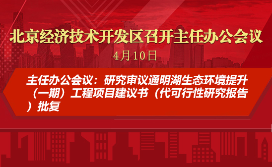 4月10日下午,工委副书记、管委会主任孔磊主持召开北京经开区2024年第14次主任办公会,研究审议通明湖生态环境提升工程等城市环境品质提升相关事项。亦庄控股总经理杨文良列席。