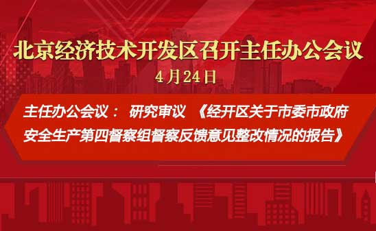 4月24日下午,工委副书记、管委会主任孔磊主持召开北京经开区2024年第16次主任办公会,研究审议安全生产督察整改情况、大气污染防治强化方案等事项,并对“五一”相关工作进行部署。亦庄控股总经理杨文良列席。