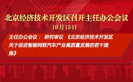 10月15日下午,工委副书记、管委会主任孔磊主持召开北京经开区2024年第37次主任办公会,研究审议《北京经济技术开发区关于促进智能网联汽车产业高质量发展的若干措施》、国家信息技术应用创新展示中心建设等相关事项。亦庄控股总经理杨文良列席。