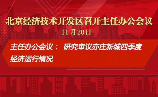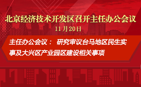 11月20日下午,工委副书记、管委会主任孔磊主持召开北京经开区2024年第41次主任办公会,研究审议亦庄新城四季度经济运行情况并作下一步工作部署,研究审议亦庄新城民生实事及产业园区建设、亦庄新城国土空间生态修复规划等内容。