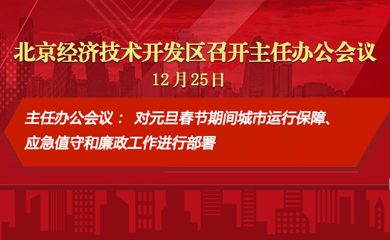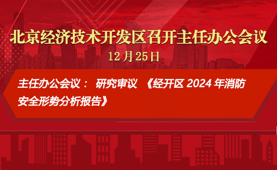 12月25日下午,工委副书记、管委会主任孔磊主持召开北京经开区2024年第46次主任办公会,研究审议2024年消防安全形势等事项,并就元旦春节假期等相关工作进行部署。亦庄控股总经理杨文良列席。