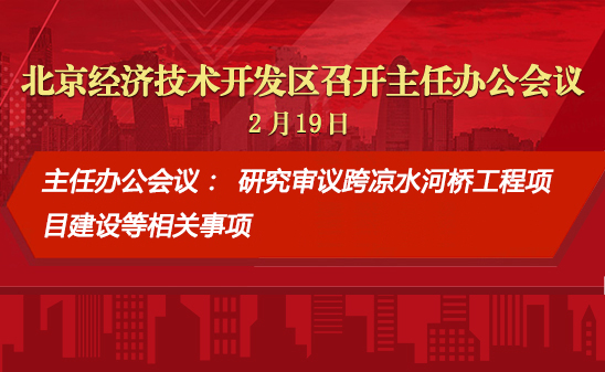 2月19日下午,工委副书记、管委会主任孔磊主持召开北京经开区2025年度第5次主任办公会,研究审议一季度“开门红”经济运行情况、跨凉水河桥工程项目建设等相关事项。亦庄控股总经理杨文良列席。